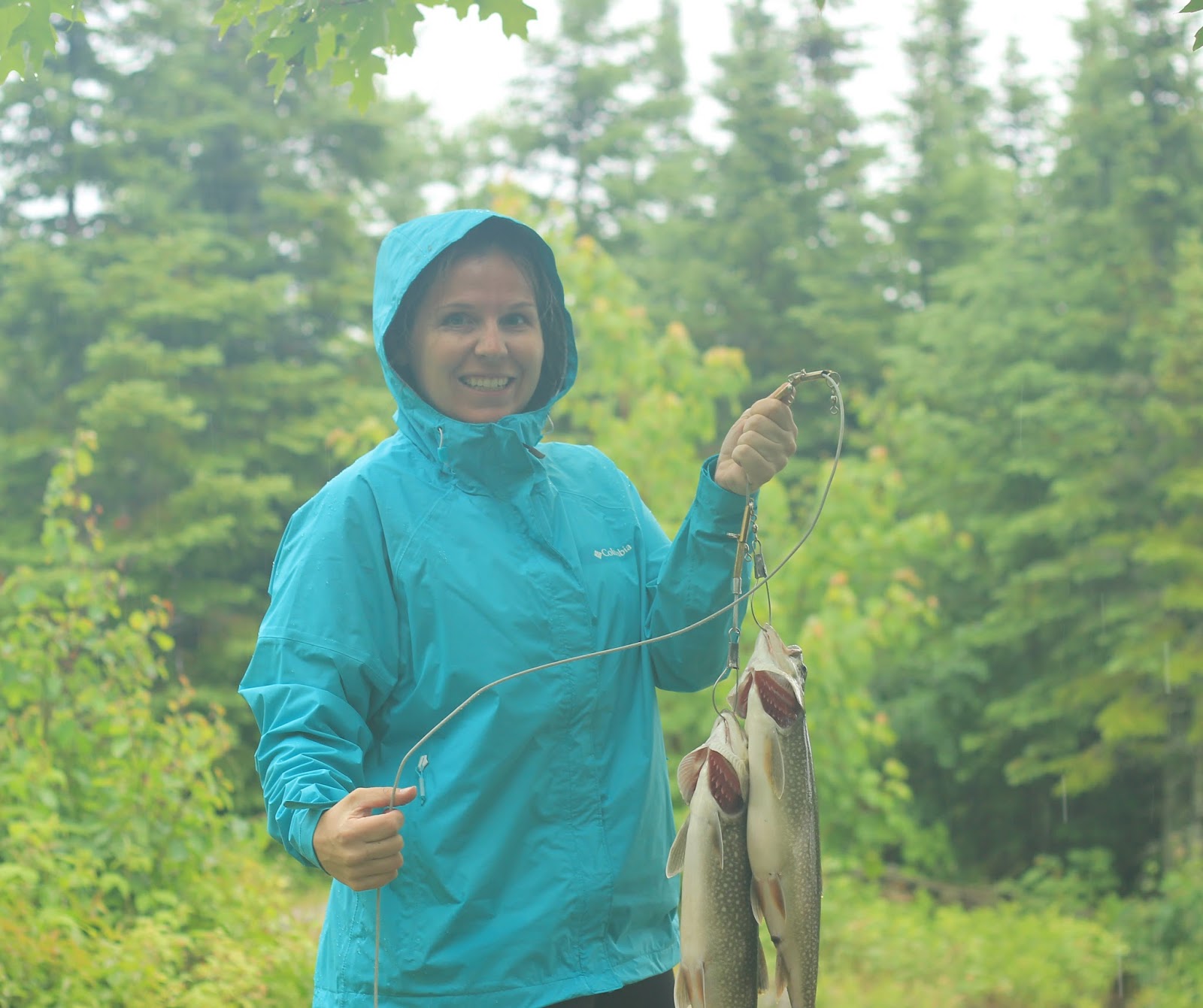 We slept pretty well that night both exhausted from a long day of physical activity! I got up early and made breakfast and enjoyed the peace and quiet. Josh got up a little later and we went fishing. Caught 2 lake trout fairly effortlessly! Both of us each caught one...was pretty cool! But with the fishing came an absolute downpour. I had a hard time staying warm/dry so made my way back to the tent and hunkered down with a book, quite enjoying the quiet.